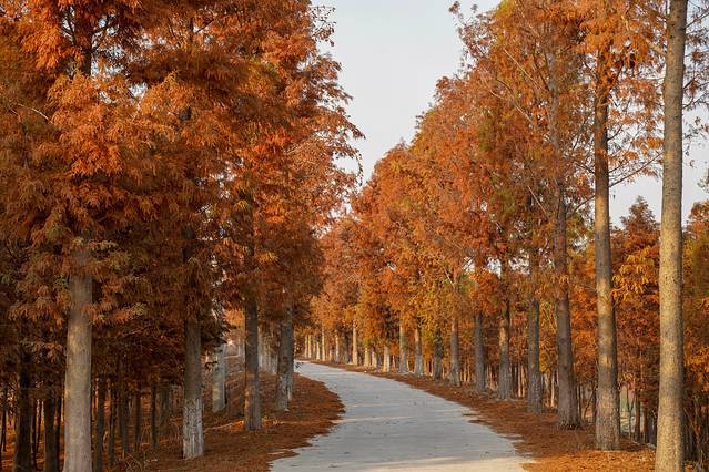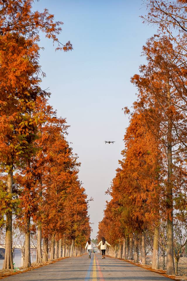 初见小镇,就被其浓墨重彩的枫叶林所吸引,道路两侧枫树林立,放眼望去,层林尽染,满是金黄,美得像一幅娇艳欲滴的油画,让人叹为观止,那一刻,所有的烦恼都在顷刻间被治愈。沿着狭长的小道缓缓踱步,冬日的暖阳透过枫叶洒落一地,光影浮动,诗意袭来。