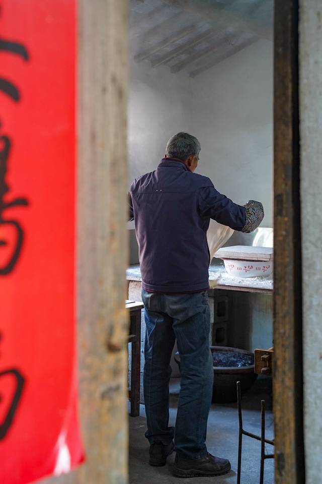 店主是一位头发花白的老爷爷,店铺地处白甸镇朱于村,是店主于四海自家盖的楼房,用来制作和售卖年糕。