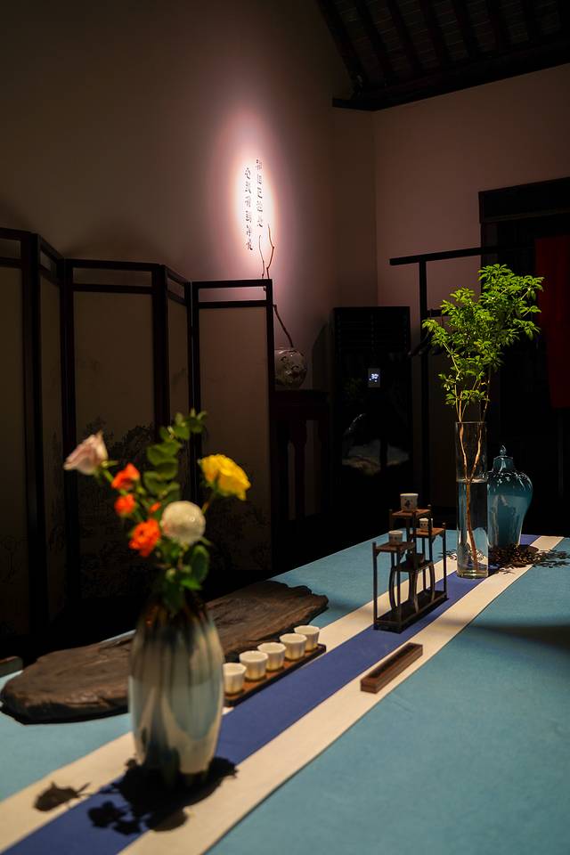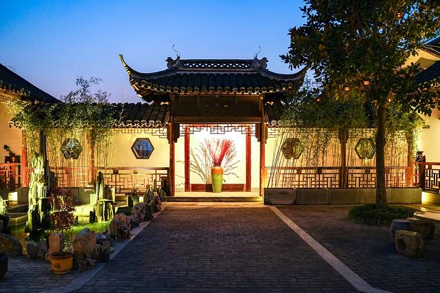 穿门而入,闲庭散落,鸟语花香,随处可见精致的陈设,在灯光的映射下,显得格外幽静,让人倍感岁月静好。