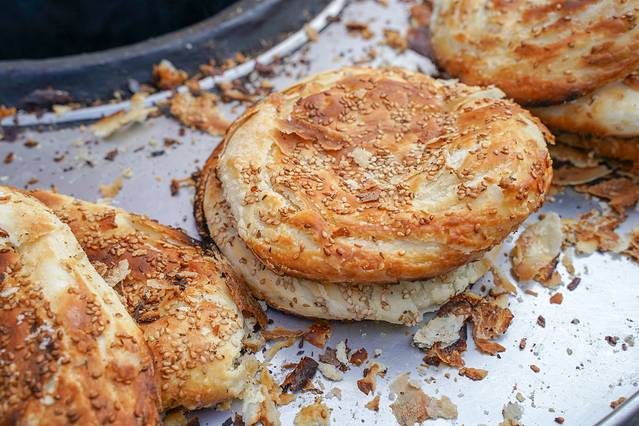 沿着古老的街区缓缓踱步,两侧商铺林立,却丝毫没有繁华的市井气息,琳琅满目的商铺之中,有这样一家烤饼店格外引人注目,还未走近,就被其热气腾腾的香味所吸引,让人忍不住加快了步伐。