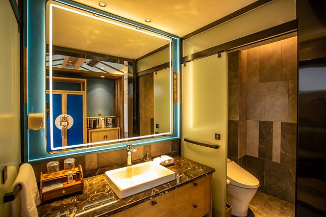 设施亮点:民宿酒吧、小花园、书吧(屯堡文创小礼品销售)、餐厅书吧全地暖、房间电子壁炉、智能马桶、蓝牙音响、加热晾衣杆、管家式服务。