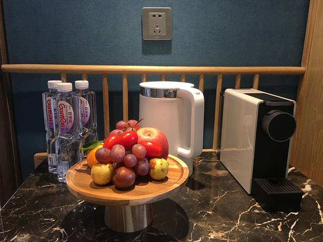 房间很温馨管家介绍床垫是进口的,布草都是啥贡缎面料对我来说感觉很软舒服就完事了,准备了当季新鲜水,还有酒店才有的胶囊咖啡机️,电子壁炉后面的柜子里还有个小冰箱(里面的饮料果汁啤酒🍹,包括办入住的大厅的冰柜里饮料啤酒都是免费畅饮的哦)