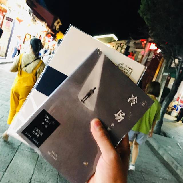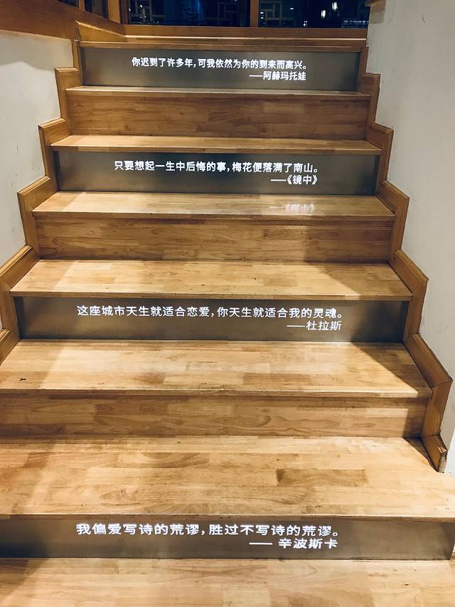 逛着逛着,一家名叫“猫的天空之城”的店吸引了我,里面是书店,也有明信片邮寄服务。这里的楼梯上有字刻着,也成了网红打卡地。恰好是生日,选了一本喜欢的书,买几张信纸和明信片,然后坐在二楼,听着对面小酒馆的歌声,写下新一年的期望。