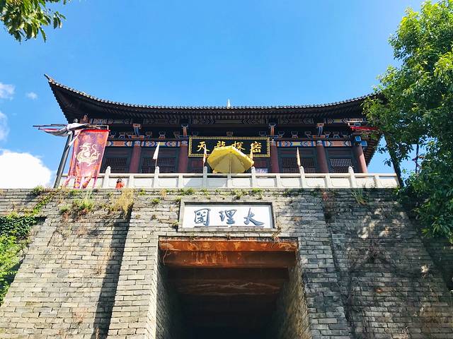 趁着阳光正好,沿着斜坡往上走,到达了《心花路放》的取景地,大理古城南门,城楼上的“大理”二字出自郭沫若先生之手。沿着复兴路往前走,这里有几家比较嗨的酒吧,继续前行往右拐,就是人民路了,吃饭、清吧、特产店都在这里。