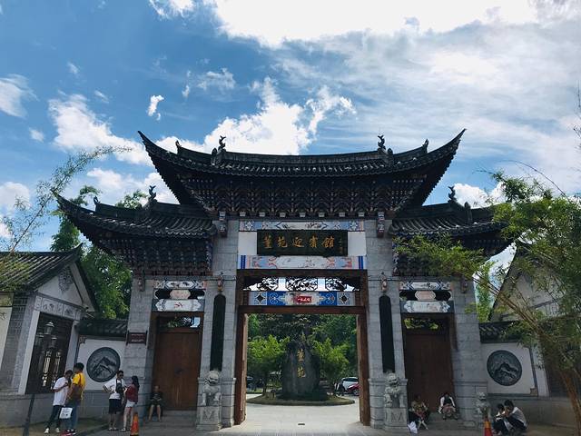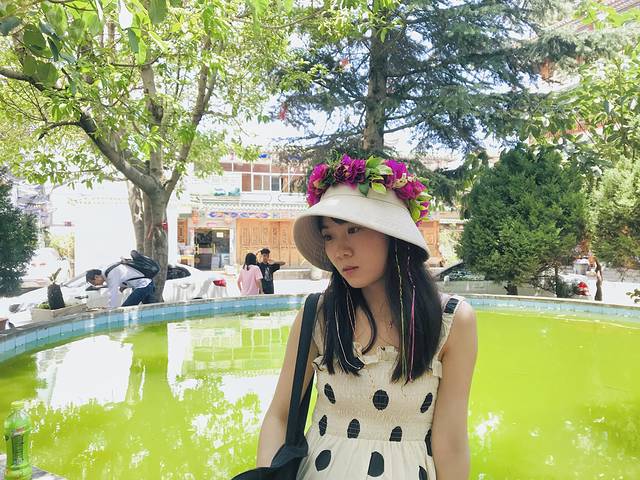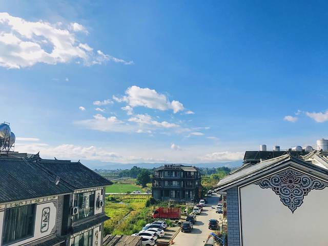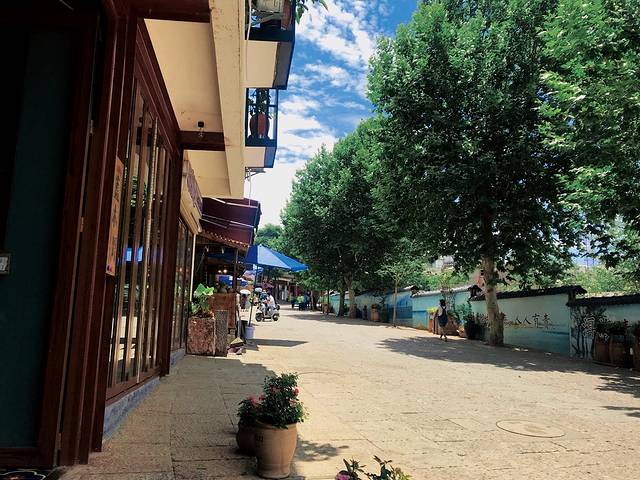 骑行两个小时之后,烈日当空,终于感受到了大理的热情。这时来到了喜洲古镇。喜洲位于大理古城以北18公里处,东临洱海,西枕苍山,喜洲是重要的白族聚居的城镇,这些民居雕梁画栋、斗拱重叠、翘角飞檐、门楼、照壁、山墙的彩画装饰艺术绚丽多姿,可见白族人的浓厚艺术氛围。