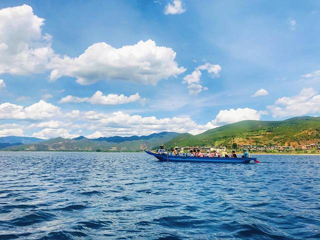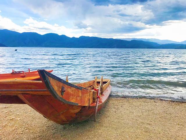 泸沽湖是《亲爱的客栈》的拍摄点之一,就在泸沽湖中央,可以坐猪槽船前往,前后一名渔夫,缓缓地滑动船桨,唱着摩梭人的歌谣,船儿慢慢悠悠地往前飘着。