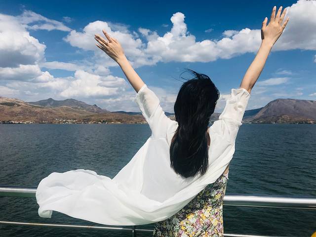 站在甲板上,微风徐来,吹散心中的忧虑和伤心;阳光洒在洱海的湖面上,波光粼粼,驱散心里的苦闷,远眺巍峨的苍山,不禁感叹大自然的鬼斧神工。戴上耳机,选一首自己最喜欢的音乐,就让时间慢下来吧。