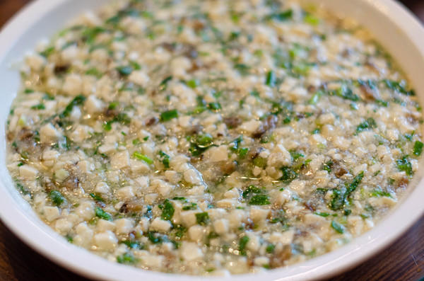 糊菜是婺源一带宴席上的第一道下酒菜,其味鲜美可口,包括如糊豆腐、糊豆芽、糊南瓜、糊萝卜菜等等。因此,乡村家庭一般都置有小石磨,便于磨粉。当地居民家办过酒席后,每每会将剩菜加上虾米、油渣、辣椒粉煮出一大锅糊糊来,叫上街坊四邻、老老少少来共尝,所以这可谓算得上是能代表婺源味道的菜。