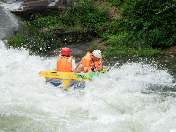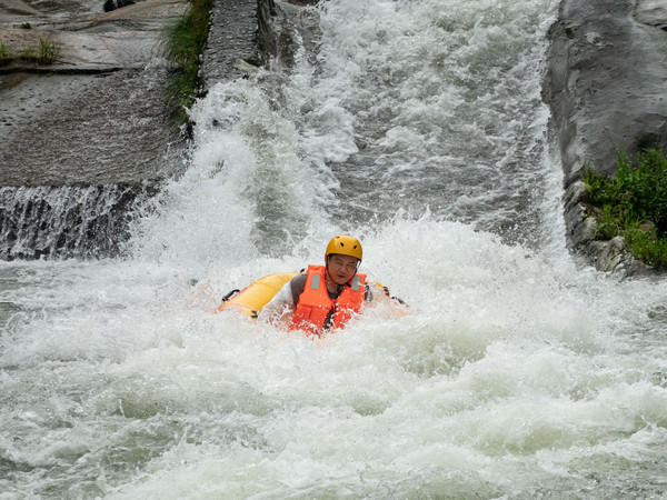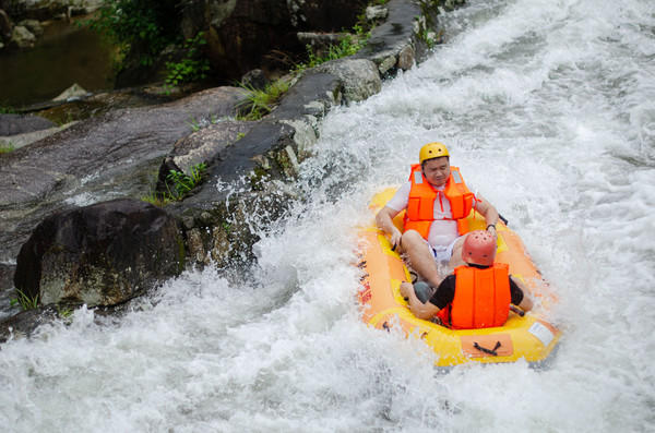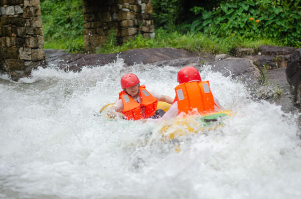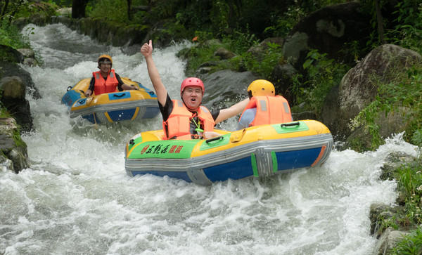 你可曾玩过从山顶到山脚的漂流,你可曾玩过长达一两个小时的漂流,你可曾玩过刺激度不亚于过山车的漂流?这些五龙源漂流都有,从湍急的陡坡开始一次美妙的漂流,一艘皮划艇上坐两人,在林间穿梭,享受夏日难得的清凉。