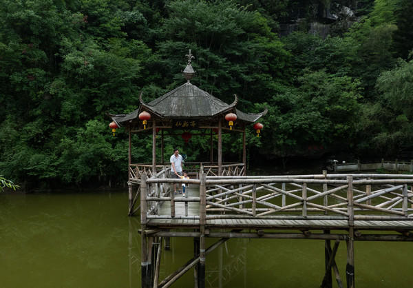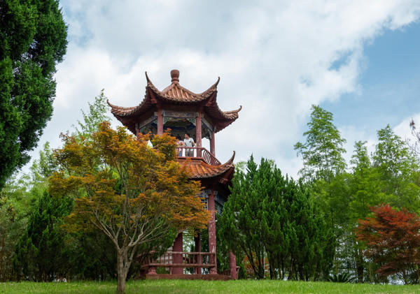 沿着湖一直向里走,终点便是这座月老祠。一把巨大的铜锁,有人称它为同心锁,也有人称它为婚缘锁,还有人称它为平安锁。情侣、恋人锁一把平安锁,以祈求百年好合;单身的朋友锁一把婚缘锁,希望在不久的将来能找到和自己共享幸福的另一半儿;您还能为自己、家人、朋友锁一把平安锁,以保生活平安美满。有了月老的赐拜、铜锁的守护,你们也将会是一对人人羡慕的比翼双飞鸟!