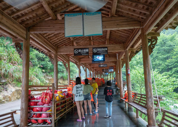五龙源漂流除了刺激,给我最大的感受便是自然,以前也曾经玩过其他的峡谷漂流,但是那些河道大多数都有人工修整后的痕迹。而在五龙源漂流,几乎漂流经过的河道都是纯自然的,因此你会在漂流的时候遇到搁浅这样的情况。而且一路上除了溪水带给你清凉,你还能尽情的欣赏这里的风光,这里的乡村,这里的古木。