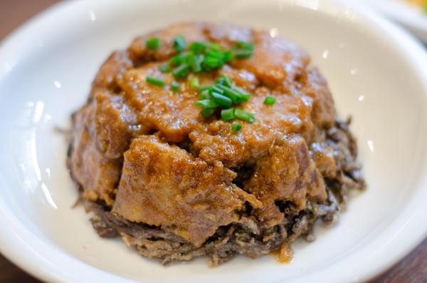 粉蒸菜,这道菜算是婺源最为特色的一道菜,也是中国的一道传统名菜。虽然其他的地方也有,但是婺源的粉蒸菜更加的多样,婺源村民爱吃粉蒸菜,无论荤腥园蔬都喜用拌米粉蒸,甚至还创新出肉类和蔬菜一起蒸,比如这道粉蒸肉便是猪肉在上面,下面是干豇豆,滋味丰富,五香味浓郁,这道菜也有个独特的名字——蒸杂碎。