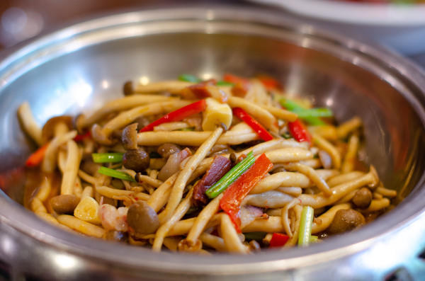 婺源的地貌,大多都是山林,而山野之中的美食,最为鲜美的当属竹笋。四月笋正鲜,六月的笋也同样鲜美。在婺源,人们喜欢用新鲜的笋和肉搭配,一荤一素,碰撞出不一样的口味,当然再加上体现的辣椒,如今组合在一起更为鲜美