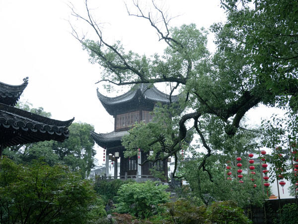 绕过“半亩方塘一鉴开”的朱绯塘,世界已被绵密的细雨所包围,我努力拭去镜头上的水雾,也未见天光云影的徘徊。周围都是些穿着汉服的人们,看他们的服装说明了来自宋朝,撑着油纸伞,漫步在这座古典娟秀的园林里。