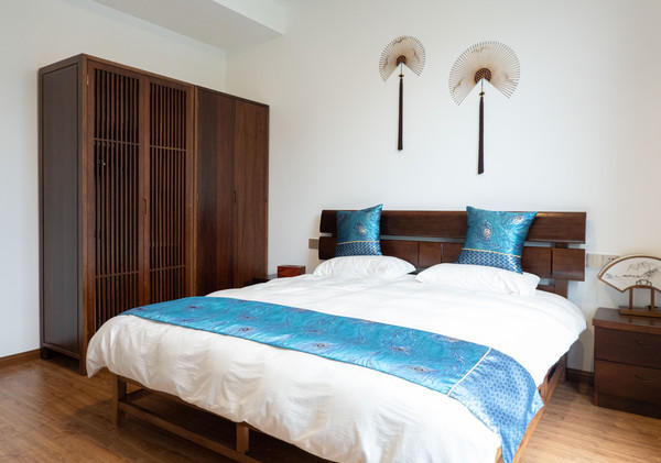 “闲居双溪”位居双溪河畔,比邻双溪王家。衬着这一方如诗如画的美景,筑一妙舍,来此闲居,何等快活自在。粉墙黛瓦,山水林木相衬,座北朝南,风拂日照相宜。一座典型的徽式建筑。室内留白居多,边角线条流畅自然,客房一几、一床、一橱俱为实木,简洁不繁。