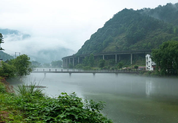 重叠的高山,看不见一个村庄,看不见一块稻田,这些山就像一些喝醉了酒的老翁,一个靠着一个,沉睡着不知多少年,从未有惊醒它们的梦。 在婺源五龙源漂流,每一处都是庄严肃穆,每一处都充满阳光,没有雾时,千山一碧,有雾时,则云雾迷蒙,山连山,水接水……