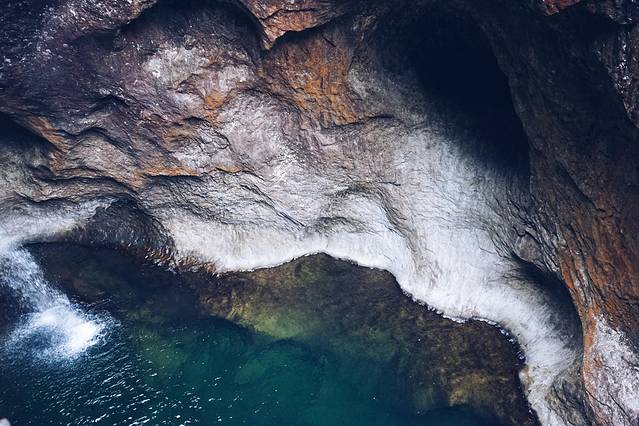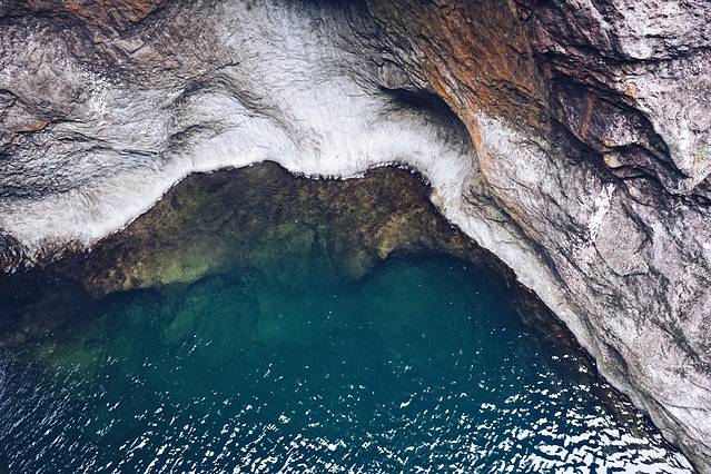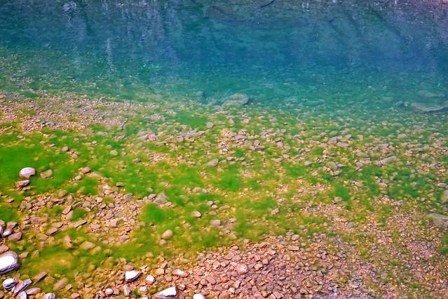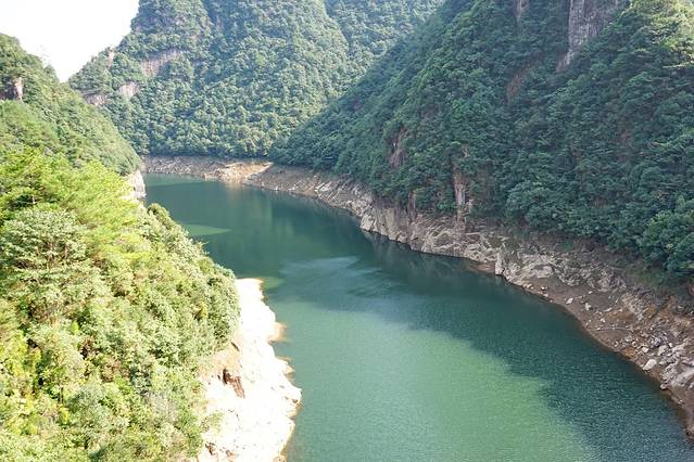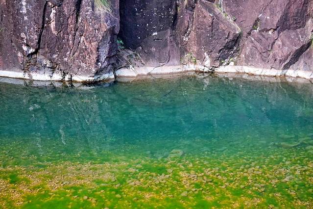 碧潭两边的石壁都是很光滑的岩壁,里面的水碧绿清澈见底,有一种星球大战里其他星球的错觉感。