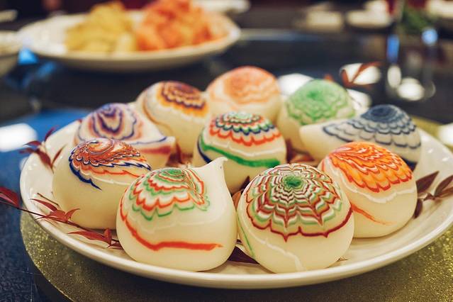 《文成米塑》:传统宗族祭祀所用米塑造型,由米粉与传统柒料制作而成,一般以桃形、蔬果、动物、戏曲人物等为主,旧时作为祭品。文成米塑经民间传承至今,现为非物质文化遗产。