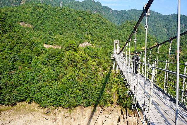 龙麒源景区的铁索桥,约500米,据说是中国最长的铁索桥。下面的悬崖峭壁,也是一览无余。
