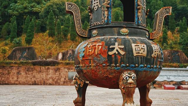 布满铁锈的香炉。