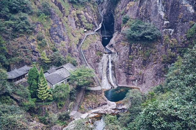 整个瀑布是阶梯形瀑布,有着一漈百丈高、二漈百丈深、三漈百丈宽只说,表明了百丈漈景区的雄、奇、壮。