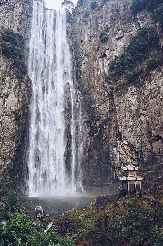 如果你来过百丈漈景区,以后就不用看其他瀑布了。这个景区有中国最高的瀑布,百丈漈为“V”形深壑巨涧,涧长1200米,落差达353米,形成三折瀑布,俗称头漈、二漈、三漈,距离在古代是用丈来称的,所以取名叫百丈漈。