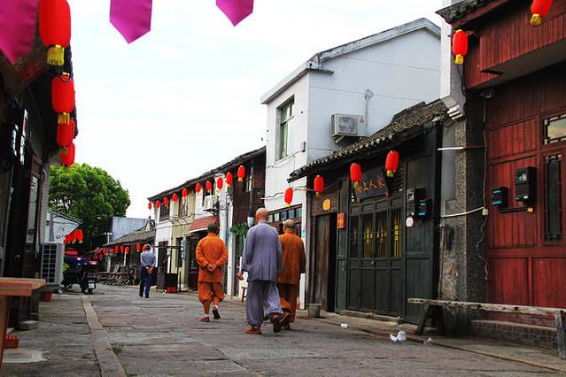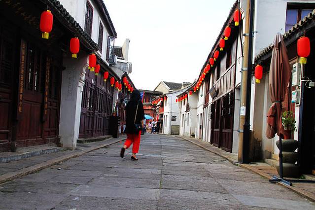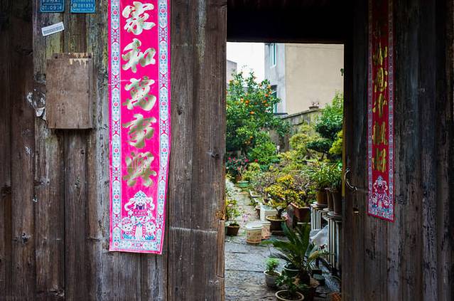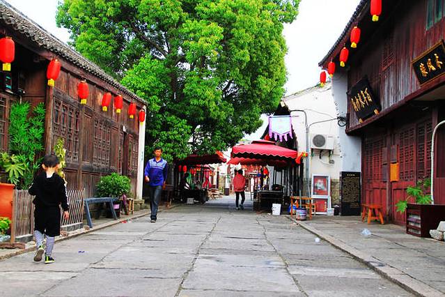 到了高亭,未敢片刻停留,从码头乘502路公交车来到东沙古镇。明明是第一次来,却有种似曾相识的感觉,同样的两三层建筑,同样的两旁林立的店铺,也是暗红色油漆大门,跟其它古镇有些相像,却又不一样,它不同于我见到的喧嚣拥挤的古镇,恰恰相反,东沙太安静了,是那种一落地就能感受到的宁静。这里没有小桥流水,也没有舞榭歌台,少了江南古镇的秀气,多了几分海岛的质朴。