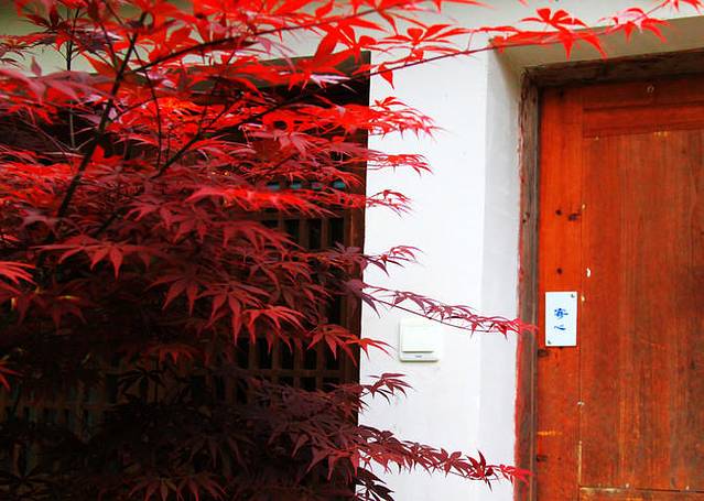 房门口的红石楠正吐着火焰,正迎我心,会挑民宿也是一门艺术。