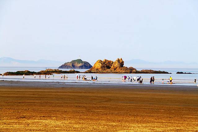 鹿栏晴沙居“蓬莱十景”之首,因处鹿栏山下得名。沙滩南北长3600米,东西宽500米,沙质细腻而坚硬,滩坡平缓,沙呈铁灰色,故有“万步铁板沙”之称。