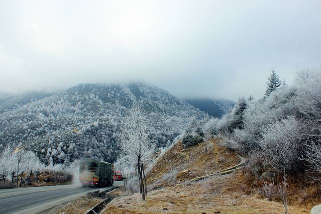 新都桥青空万里,阳光灿烂;走过折多山垭口过后,钻进云海之中,才发现四野一片白雪茫茫,昨夜康定上折多山这一路果然下了小雪。不过十几分钟时间,从青空草原到白雪山岭,仿佛穿越进了另一场梦境。