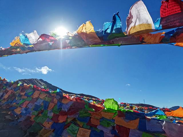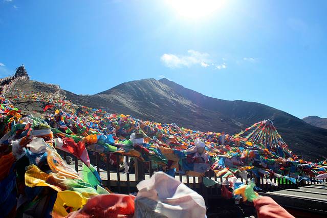 青空下一路前行,路边有外地车辆出了车祸,在路边等待拖车;有年迈的藏民不急不躁地冲着路过的车辆挥手想要搭车;摆了摊子在路边贩卖酸奶子的摊贩在阳光里发着呆……时睡时醒,等到精神突然清明起来的时候,刚巧翻过折多山垭口,告别关外。