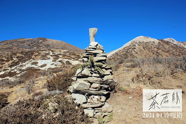 在山岭上有一段路居然有着满格的信号,走完这段路程,翻过一道山岭,已经冻成一整块巨大冰块的冷嘎措忽然出现在眼前。