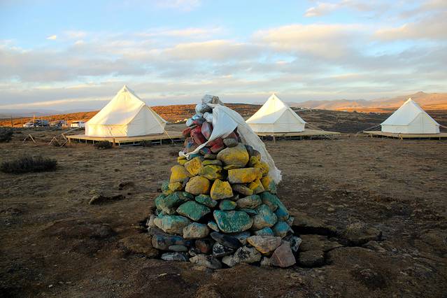 Day 2:新都桥—(AM0500-0800)—泉华滩(AM0800-1000)—(AM1000-1100)—冷嘎措;冷嘎措(上山:AM1100-1245;下山:PM1500-1730);冷嘎措——泉华滩—(PM1830-2110)—新都桥(宿新都桥)。