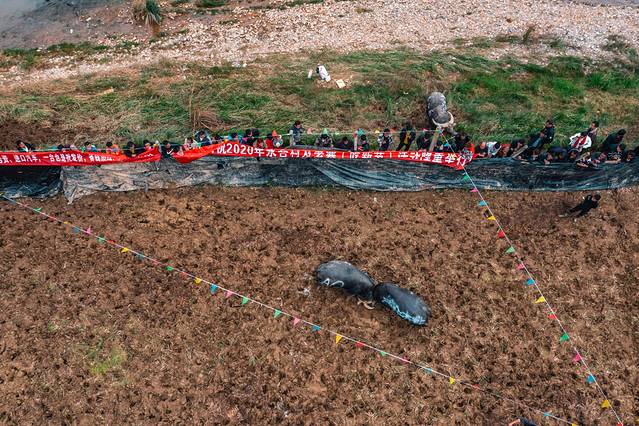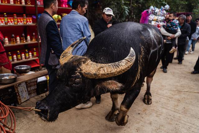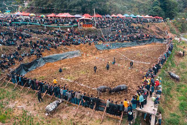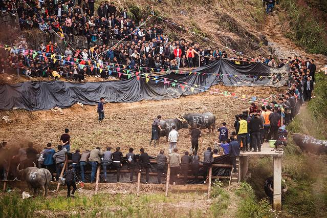 比赛就在一个泥坑里面进行,据当地人说一年举办一次,时间不固定,过两周另一个寨子有更壮观的斗牛大会。