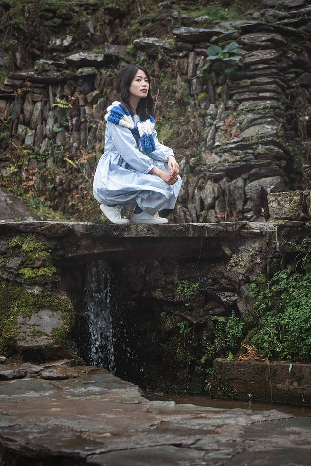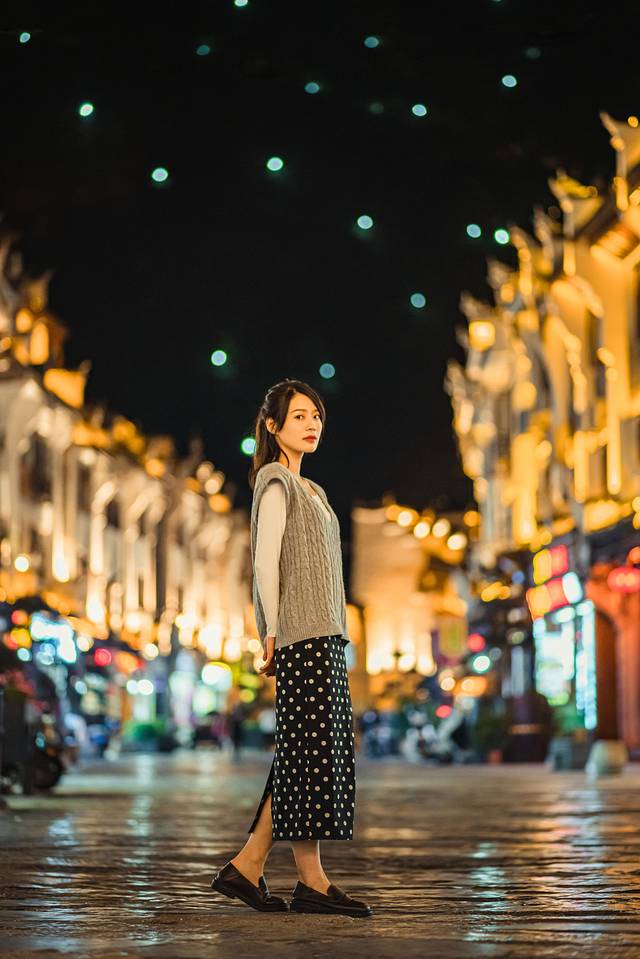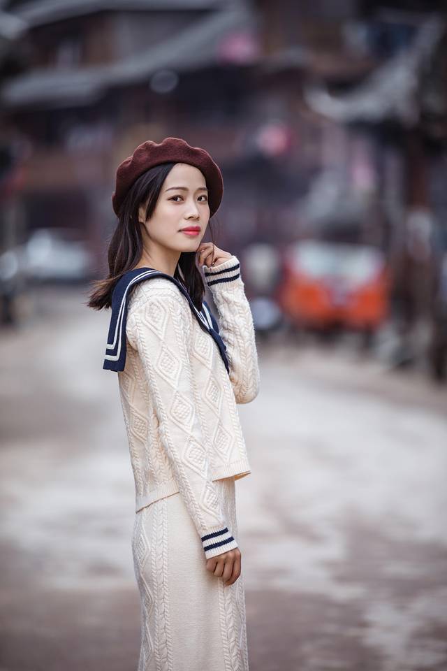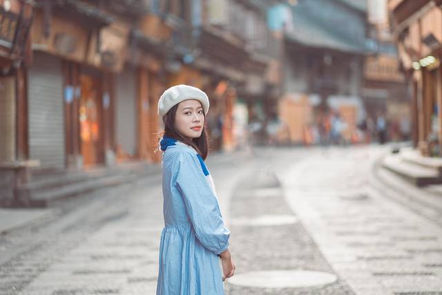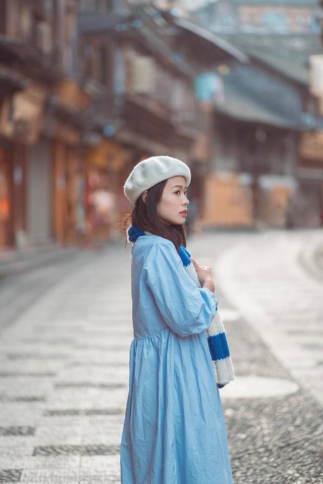 礼团鼓楼的位置最好拍,模特可以站在通往它的小路上,以鼓楼为背景拍,摄影师站在路口处。