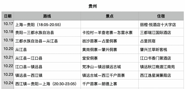 一共8天的行程,整条路线是个三角,不走回头路。全程自驾1000多公里,路况很好,除了有些盘山公路之外,都很好开。由于景点之间都有一定距离,而且有些没有被商业化的寨子交通很不便,所以自驾是最合适的。如果只去那些被开发了的景区,可以坐公共交通到达。