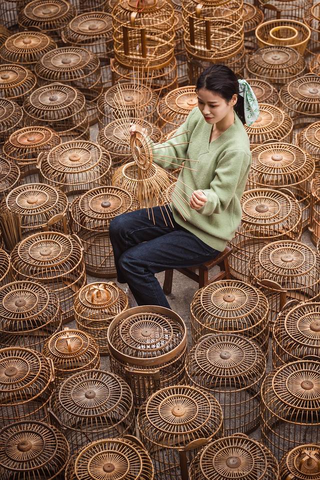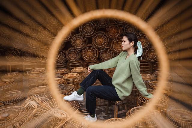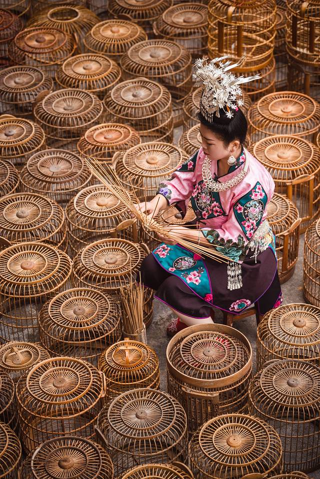 拍完了模特,我当然也要充当一回“鸟笼少女”,坐在鸟笼中摆拍。别看照片里有很多鸟笼,其实只是集中在一小块地方,通过摄影的艺术,利用中长焦切掉多余的边缘,拍出密集的感觉。