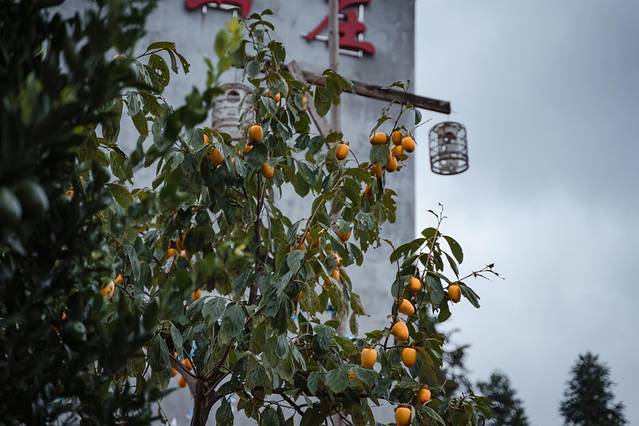 拍完往里走,看见一棵柿子树,长得太诱人了,好想摘一个吃吃。