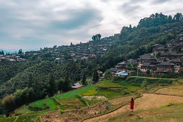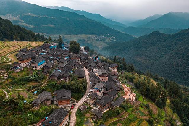 肇兴侗寨的山顶有一个堂安侗寨,更小众,不需要门票,距离肇兴侗寨只有6公里左右,喜欢爬山的甚至可以走上去。但是一般推荐坐车上山,肇兴侗寨内有中巴往返20元,也可以包当地人的车上山。