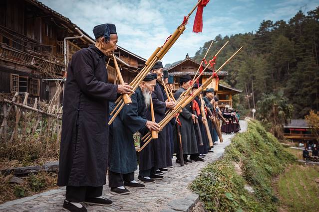 岜沙人仍保持着两千多年前古老的生产方式,堪称苗族传统文化的“活化石”。其鲜为人知的枪手文化、镰刀剃头、鸣枪迎宾、树葬习俗、树木崇拜更为独特神秘。