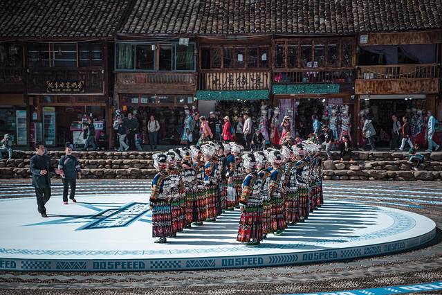 最后一站是郎德苗寨,它是黔东南最早对外开放的苗寨之一,是全国第一个民俗风情村寨游览地,后来在各地兴起的“民族村”都是在它的启发下建立的。郎德苗寨分为上寨和下寨,上寨对游客开放,节日期间或旅行团来时会有热情的迎客仪式和盛大的芦笙舞、铜鼓舞、板凳舞等苗族歌舞表演。