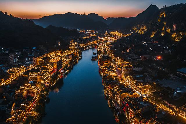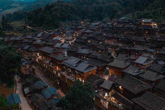 西江千户苗寨作为苗族的代表,就像一幅让人惊叹的画卷,夜晚更是犹如星河般璀璨。
