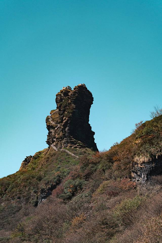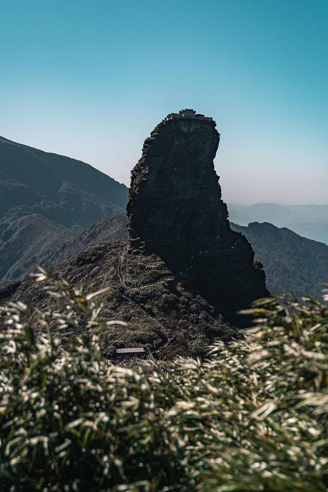 可惜我们遇到了大晴天,梵净山褪去仙气,变成了凡间模样,仅是一块巨石立于山头。