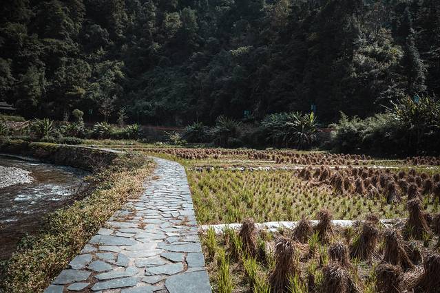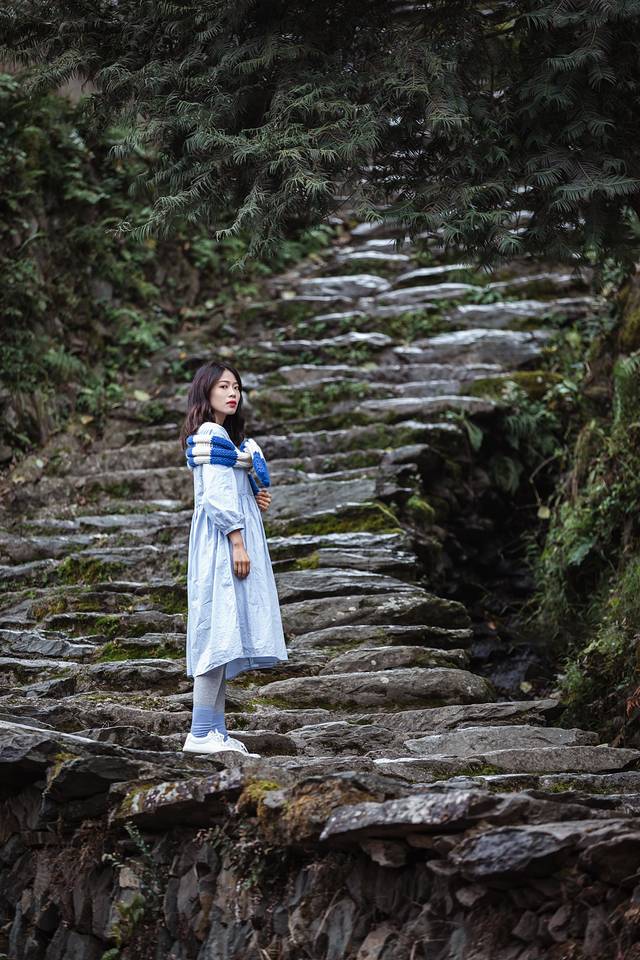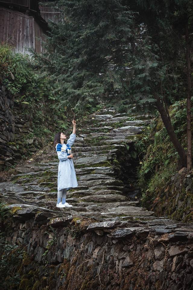 我们刚上山就遇到了大雨,所以只能在休息亭躲雨,也没有出去逛村子。等雨小了,在石梯上拍了几张就下山了。
