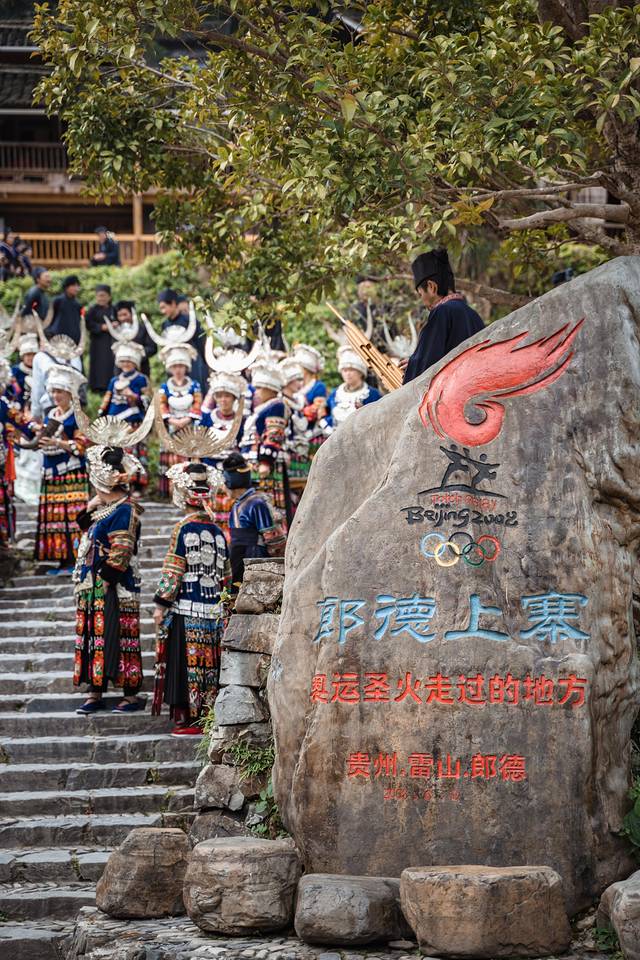 寨门口立着一块纪念石,这里曾是“奥运圣火走过的地方”。2008年奥运火炬贵州凯里传递的起跑仪式,就设在朗德上寨的铜鼓坪,这也使得当时郎德上寨声名大噪。