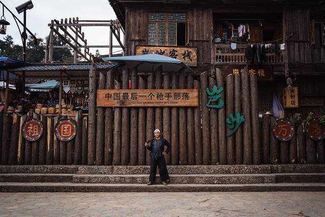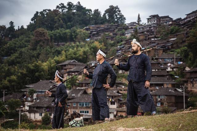 岜沙苗寨最大的看点是岜沙男人,他们发髻高盘,肩扛长枪,无疑成为了摄影爱好者镜头下的“最佳主角”。用张力的话说,我们是“摄影扶贫”,因为花钱拍摄当地人已经是岜沙苗寨的一项旅游收入。