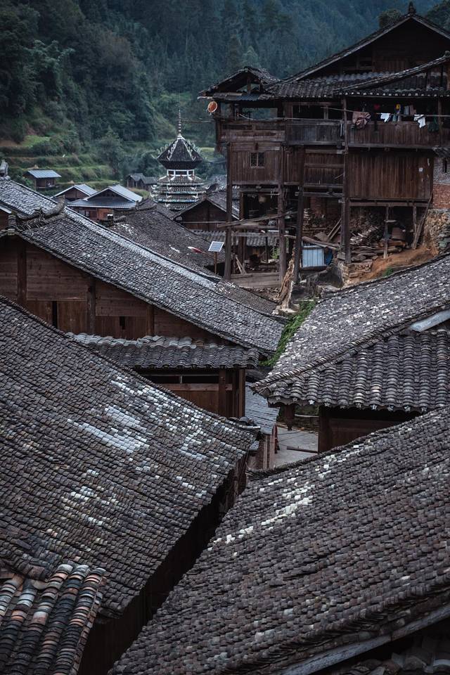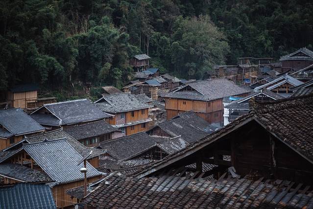 继续走进寨子,才看清这些错落有致、盖着小青瓦的干栏式木楼。栏杆建筑被国内众多研究专家誉为“中国民族建筑活化石”,古代劳动人民的智慧是无限的。