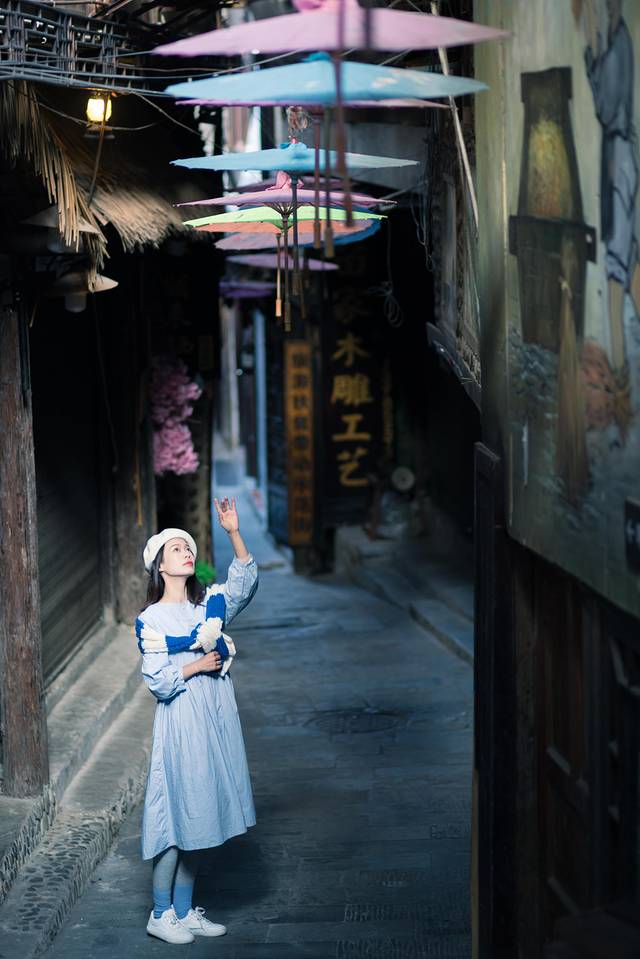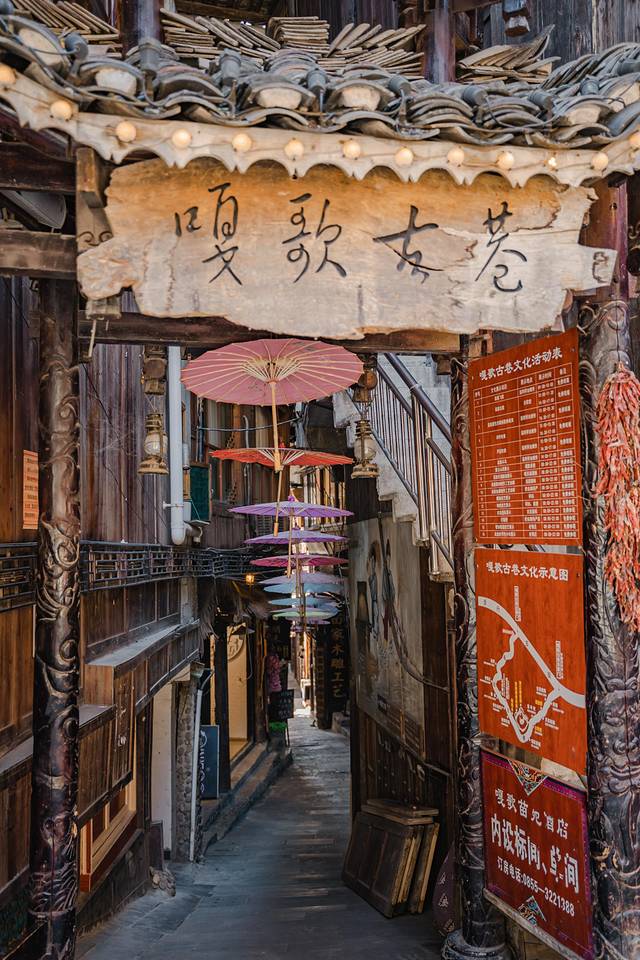 嘎歌古巷是一条挂满了油纸伞的小巷,很有味道,晚上有灯光的时候也不错。