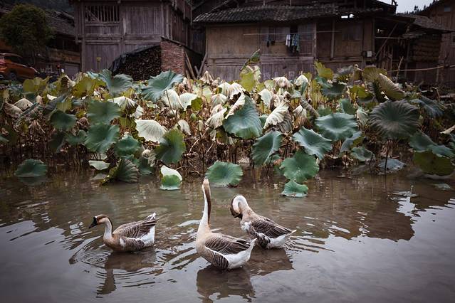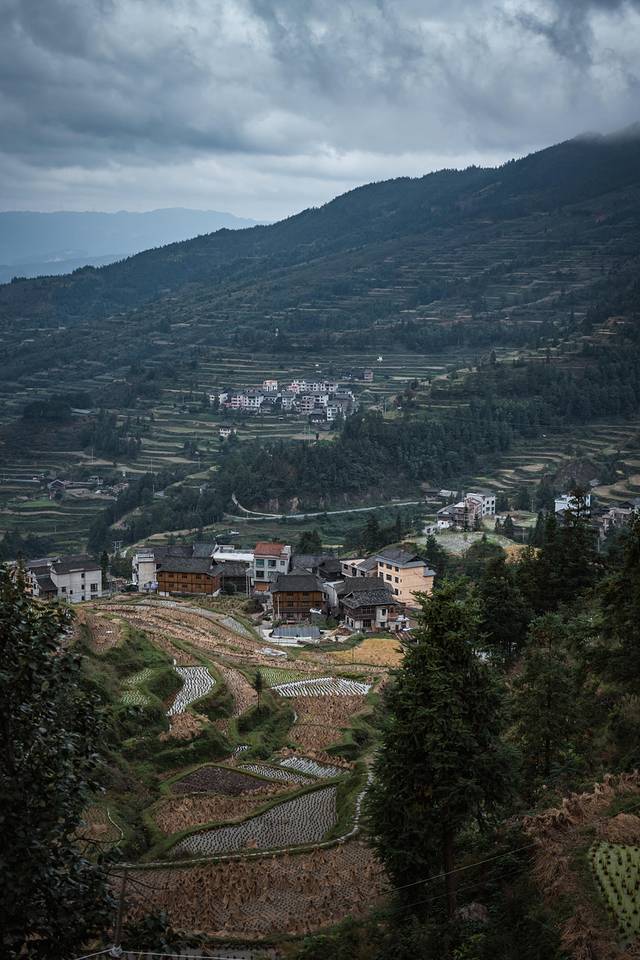 到达寨子已经天色渐暗,我们开始四处闲逛。爬上一个比较高的地方,在鼓楼附近,可以俯拍房屋,但是这个位置并不是很好。