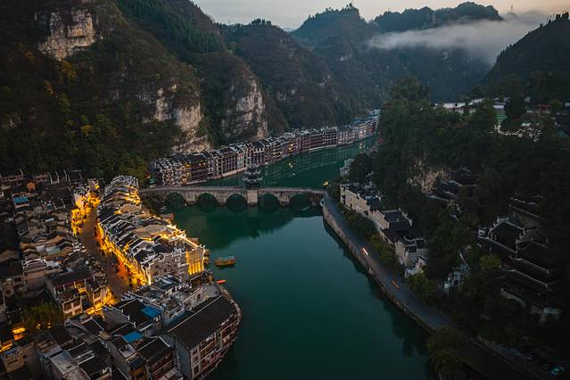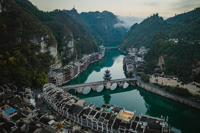 清晨可以登上石屏山,看晨雾和日出,这里是俯瞰全城最好的位置,门票15。如果有航拍的,不如直接让无人机帮你去穿云拍照,不用自己爬山了。
